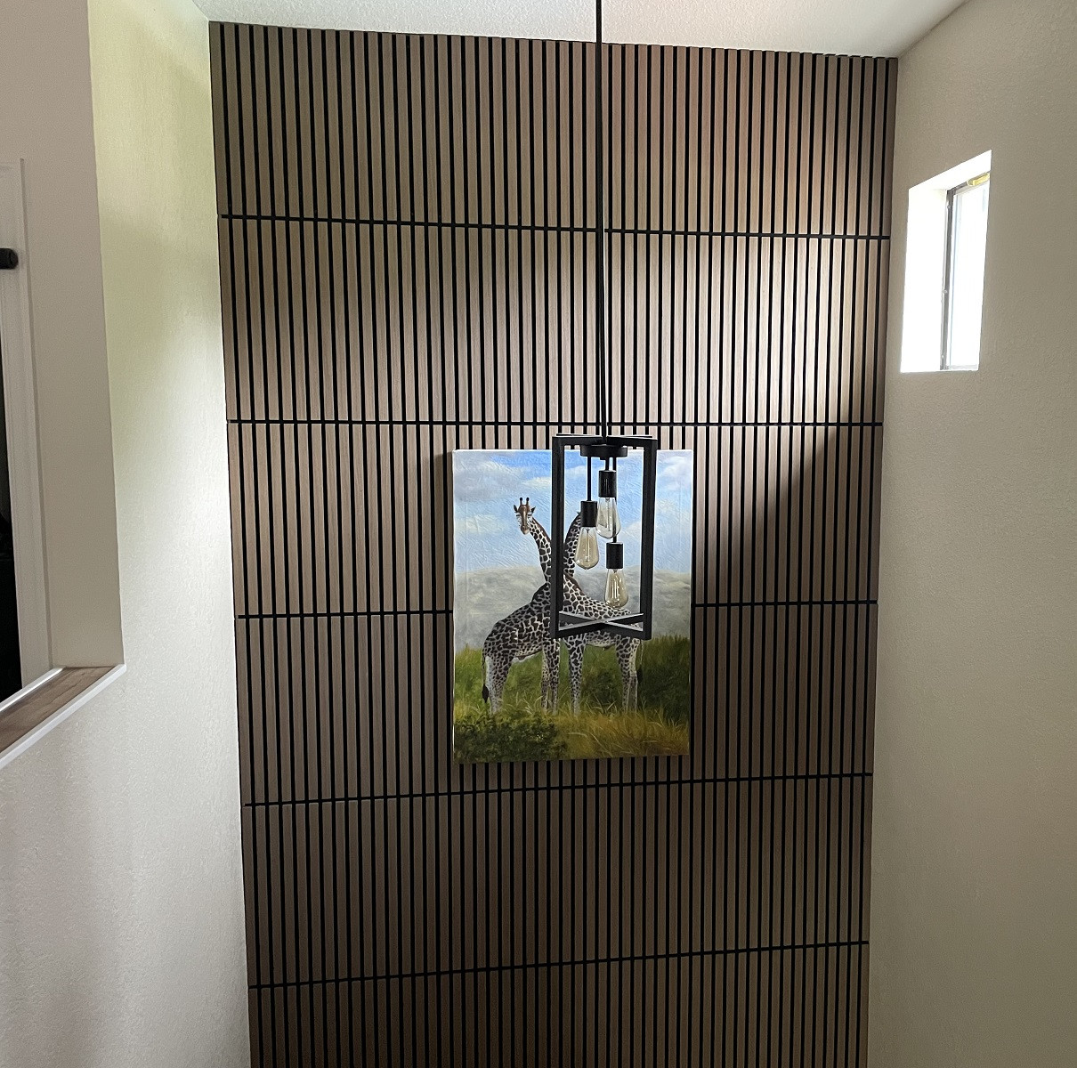 Installed and mounted 28 x Artika Sonolok Sound-Absorbing Slatted Panels, Walnut for a Customer in Lake Worth, which she purchased from Costco.