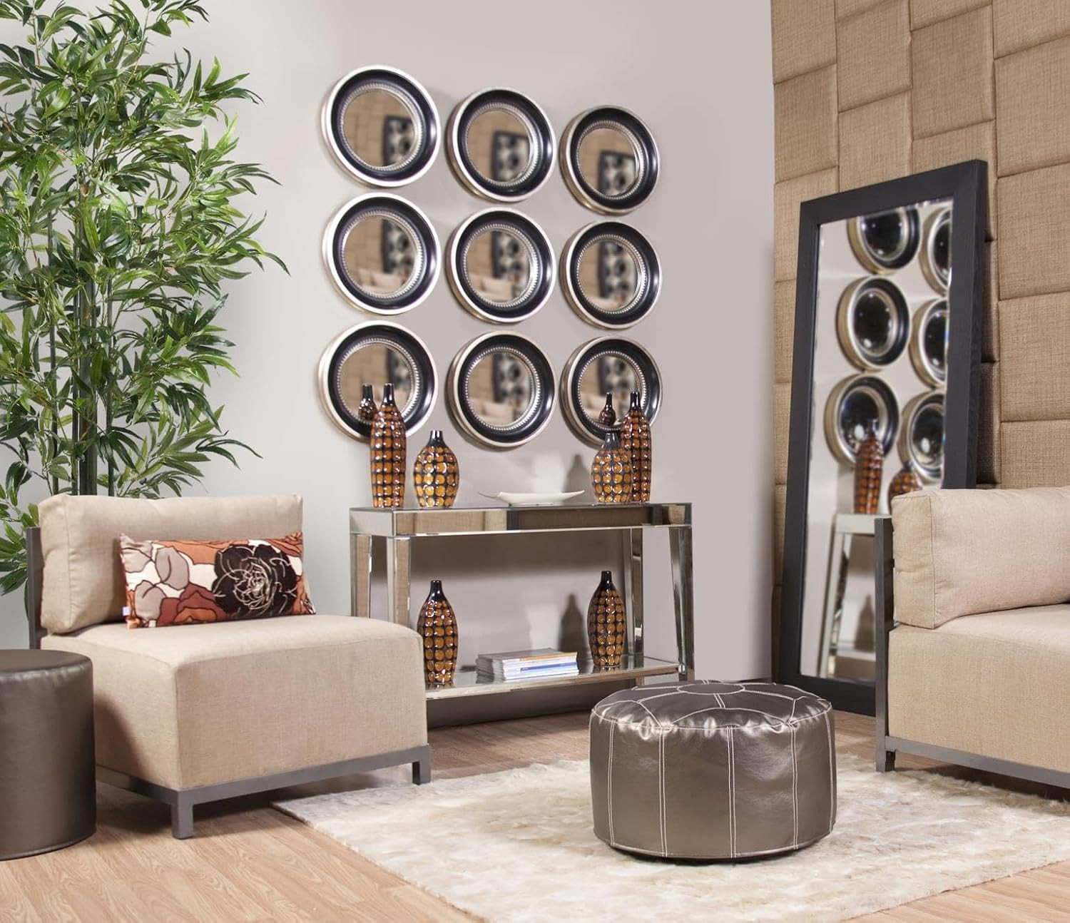 Each component was inspected for quality before assembly. The legs were securely attached to the mirrored frame, followed by the installation of the bottom shelf to provide additional stability and function.