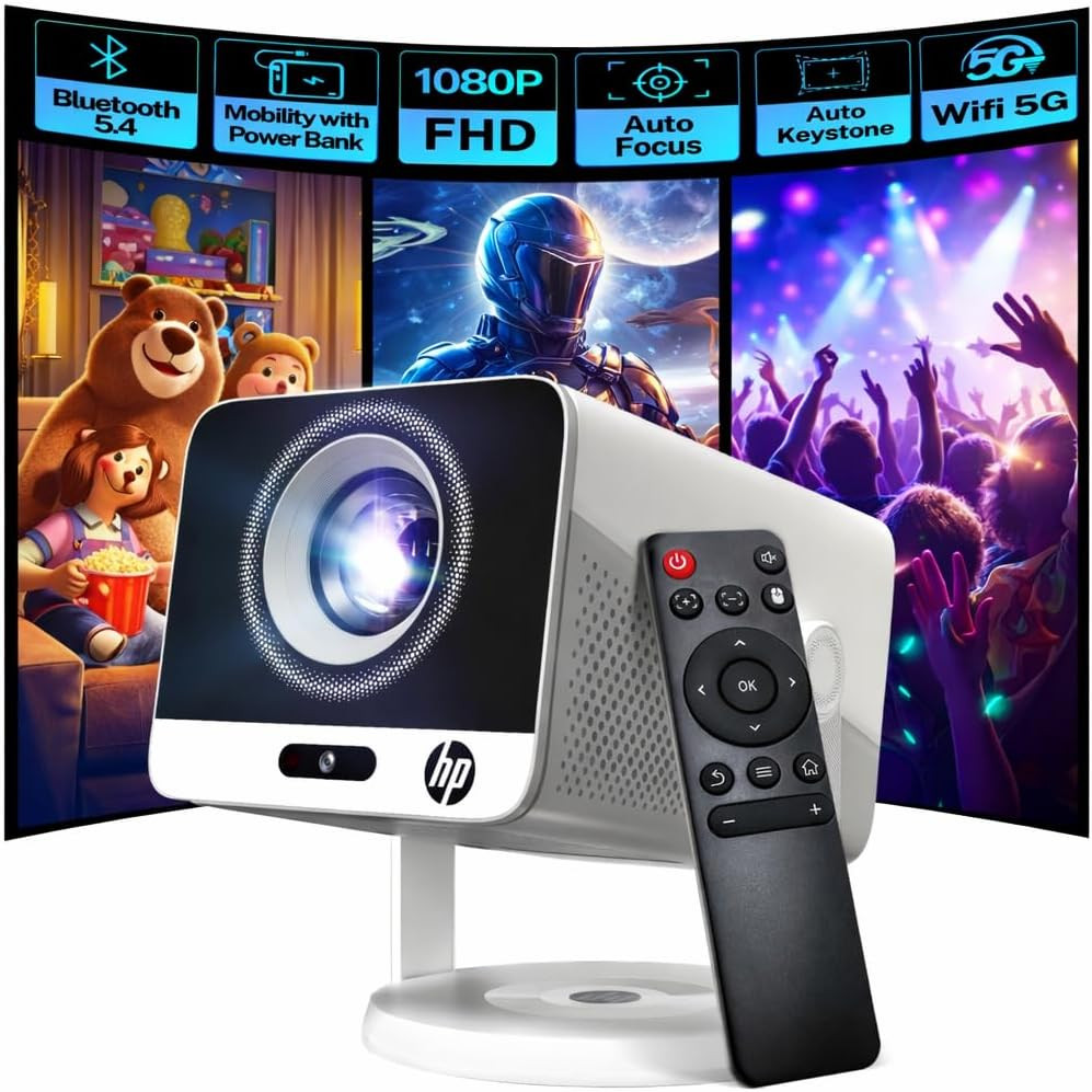 Mini Projector 1080P Full HD, HP MC425 Portable Projector, Projector with WiFi and Bluetooth, Short Throw Projector for Bedroom, Smart Outdoor Movie Projector 4K Support, Auto Focus & Keystone