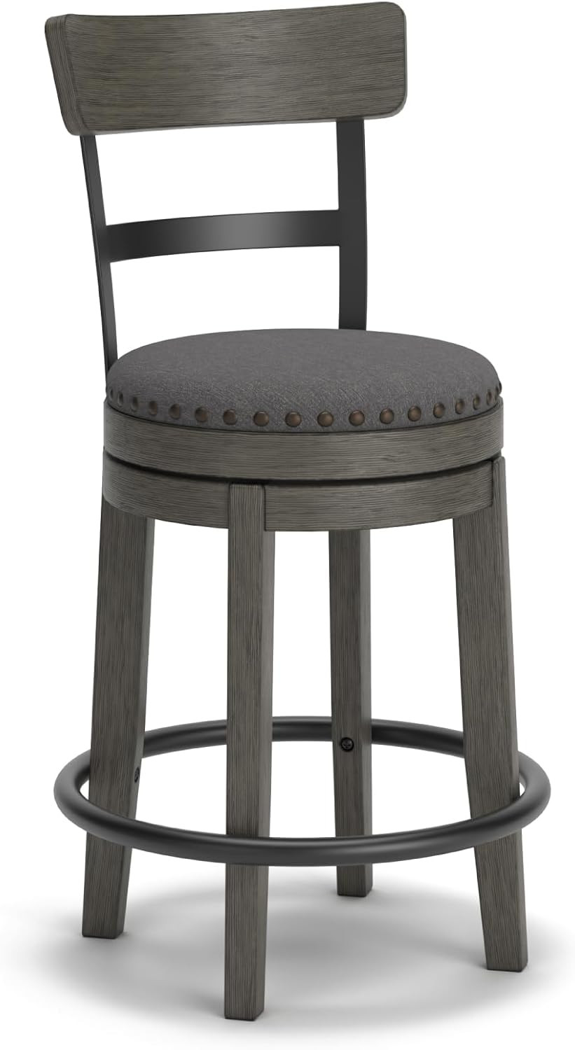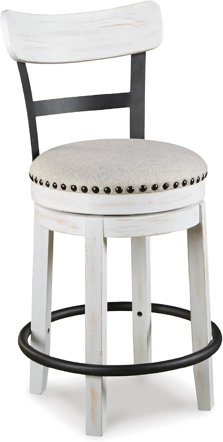 Signature Design by Ashley Valebeck Rustic Farmhouse Swivel Bar Stool – 24.5″ Counter Height, 360° Swivel Metal & Wood Frame, Polyester Upholstery