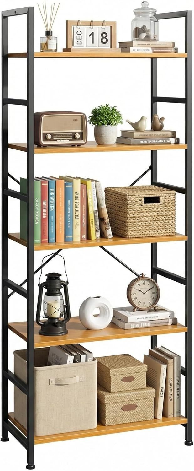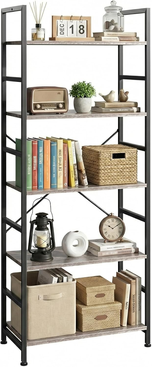 Space-Saving - This 5-tier narrow bookshelf maximizes storage without taking up much floor space, ideal for organizing books, decorations, tools, and more.