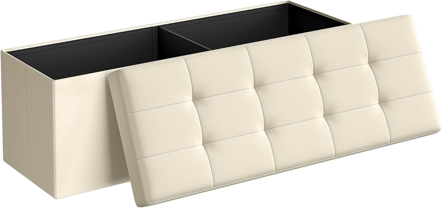 SONGMICS MAZIE Collection - 43 Inches Folding Storage Ottoman Bench, Ottoman Foot Rest, End of Bed Bench, Storage Chest, Load 660 lb, for Living Room, Bedroom, Entryway