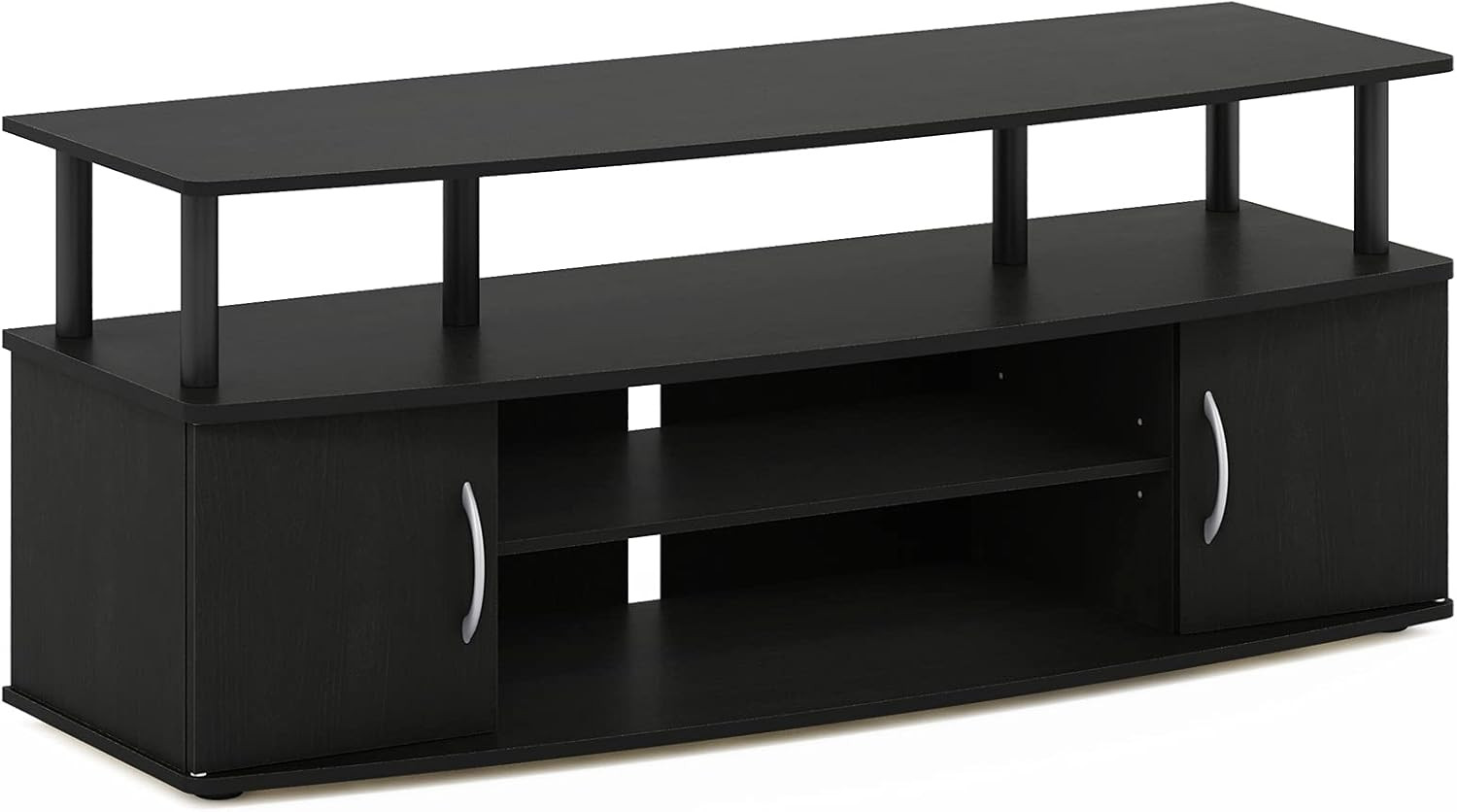 RAISED TOP PANEL & CABINETS: This entertainment center features a raised top panel for your TV, two side cabinets, and open middle shelves to organize media players, game consoles, remotes, and decor.