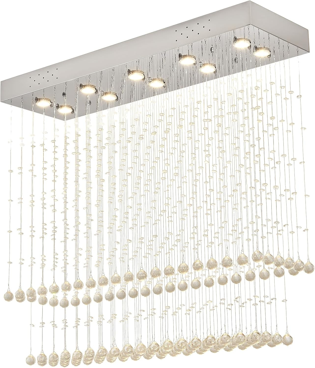 Modern & Elegant Design: This contemporary crystal chandelier features a sleek and sophisticated design, with sparkling crystals that add a touch of elegance to any space. Ideal for dining rooms, living areas, or entryways, this chandelier combines modern aesthetics with timeless charm