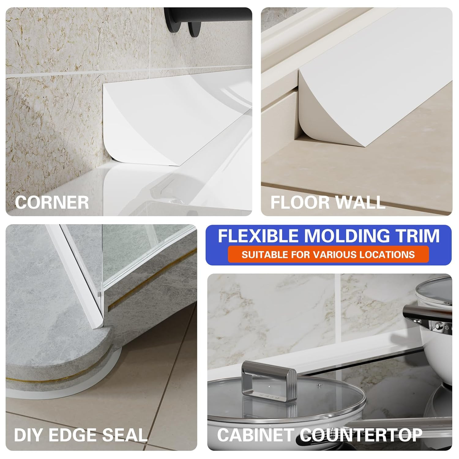 Wide range of applications - This flexible decorative caulking strip can adapt to various edges and surfaces such as countertops, bathtubs, bedrooms, living rooms, TV background walls, moldings, baseboards, ceilings, frames, cabinets, corners, etc., to ensure a neat and beautiful installation effect.