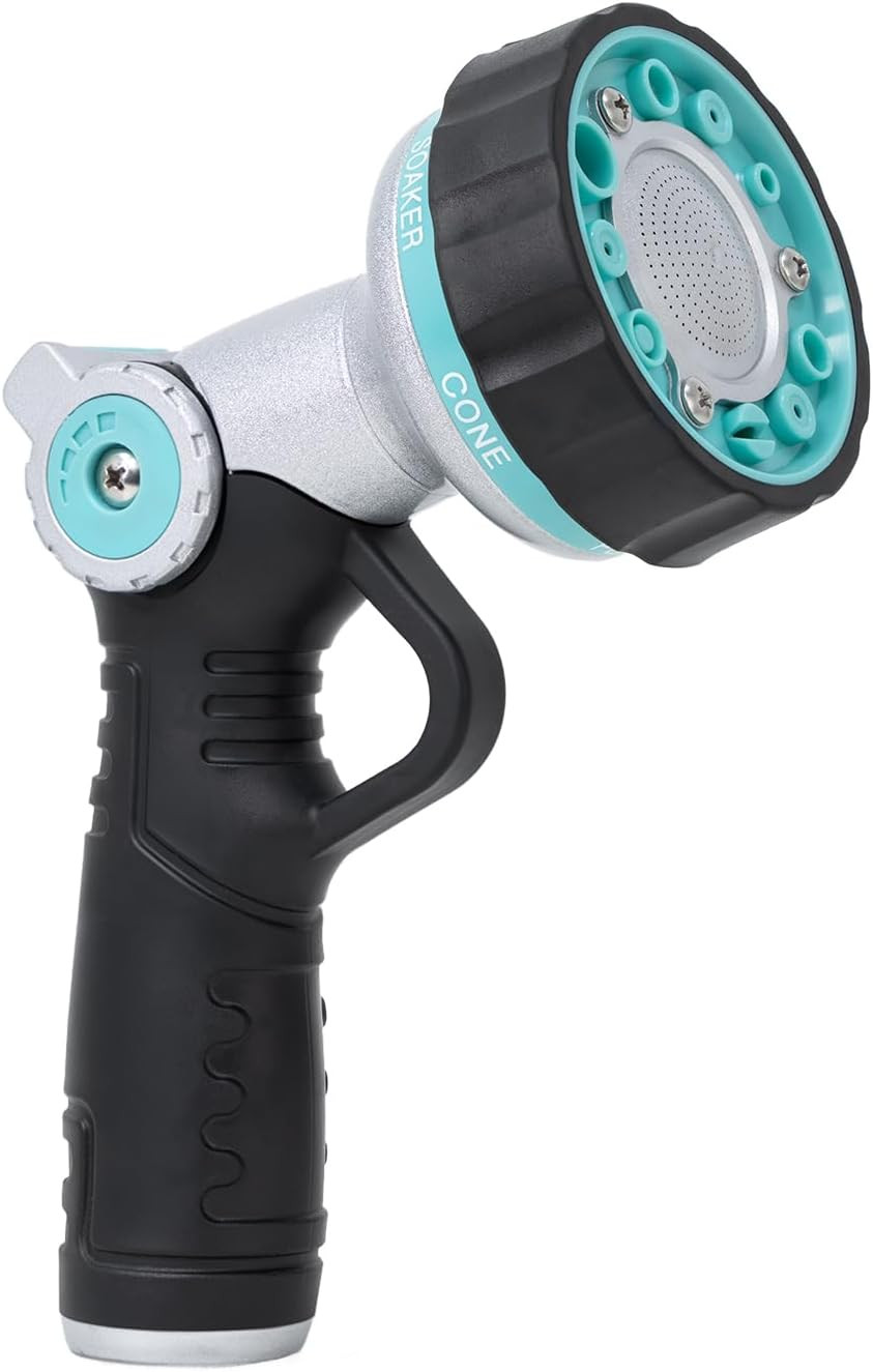 Premium Aluminum Construction - Crafted from a high-strength aluminum alloy body with a soft TPR rubber coating, this nozzle is built to last without the weight. Unlike all-plastic nozzles that crack easily, the heavy-duty metal material ensures rust-proof performance and durability, while the comfortable, non-slip grip reduces hand fatigue during long watering sessions.
