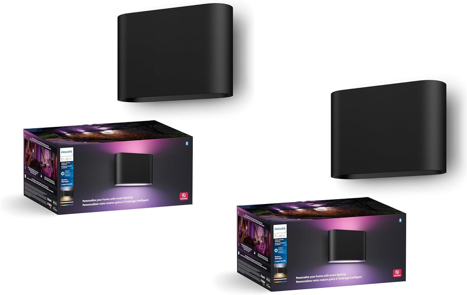 WHAT'S IN THE BOX: Includes two PHILIPS Hue Dymera Smart Indoor and Outdoor Wall Light, the design blends into the surrounding decor, bringing an element of sophistication to any space in your home