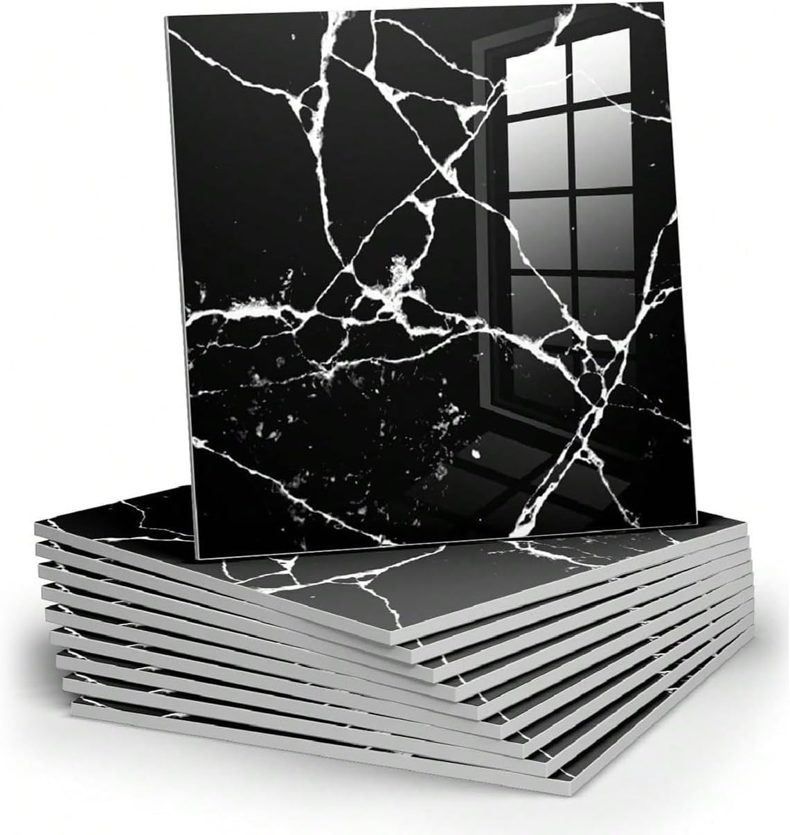 - Chejiaye 10pcs Peel and Stick Black Marble Tiles